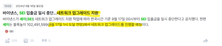세이(SEI) 코인 네트워크 업글 호재로 찐 상승 가능한지 차트로 분석해보자!