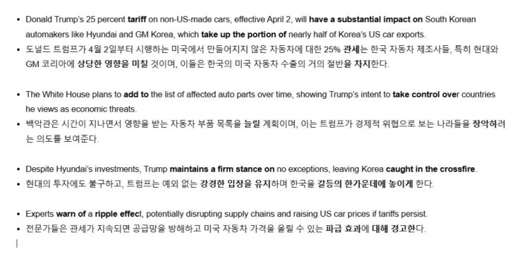 오늘의 연습할표현 tariff, have a substantial impact on, add to, take control over, maintain a firm s...