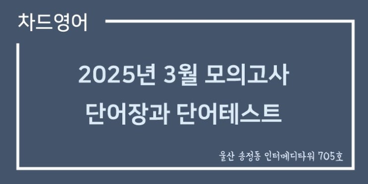 안녕하세요. 울산 송정동 영어학원 차드영어입니다. 오늘은 2025년 3월 26일에 시행되었던 모의고사의 단어...