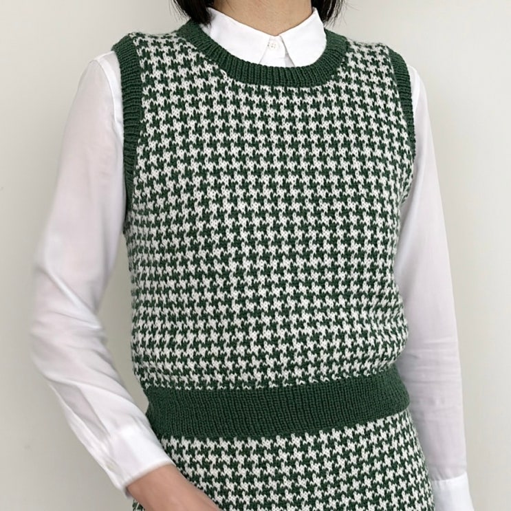 [오늘니트] 오늘하운드투스체크베스트 도안 판매 - 탑다운 가로 배색 베스트, 대바늘 탑다운 도안