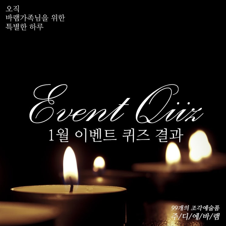 ※ 선착순 퀴즈 방법 오늘은 퀴즈 없이 진행하겠습니다. 소장하신 조각예술품의 한정수량 번호를 댓글에 남...