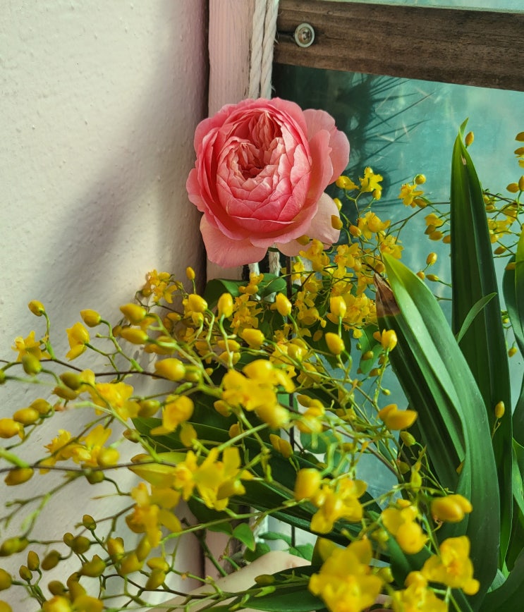 오랜만에 예쁜 수세미를 떴어요 백년초님의 함뜨로 떠보게 된 '꽃고름 힌복 수세미' 짜잔~ 예쁘...
