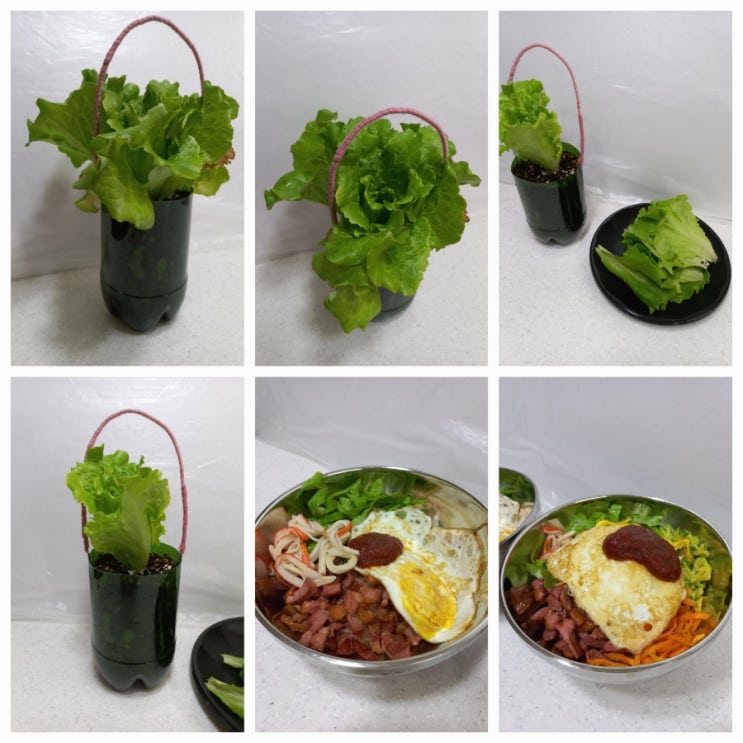 아이들이 학교에서 심어서 가져온 상추를 이렇게 만들어 먹으니 좋네요~ 학교에 가져갈 페트병 플라스틱 화...