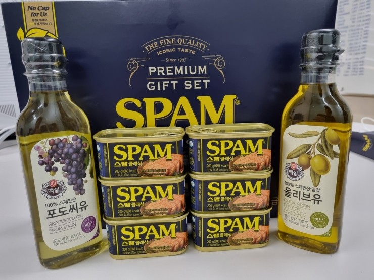 스팸1호 선물세트 스팸 200g 6개 + 고급유 2개 받은 후기