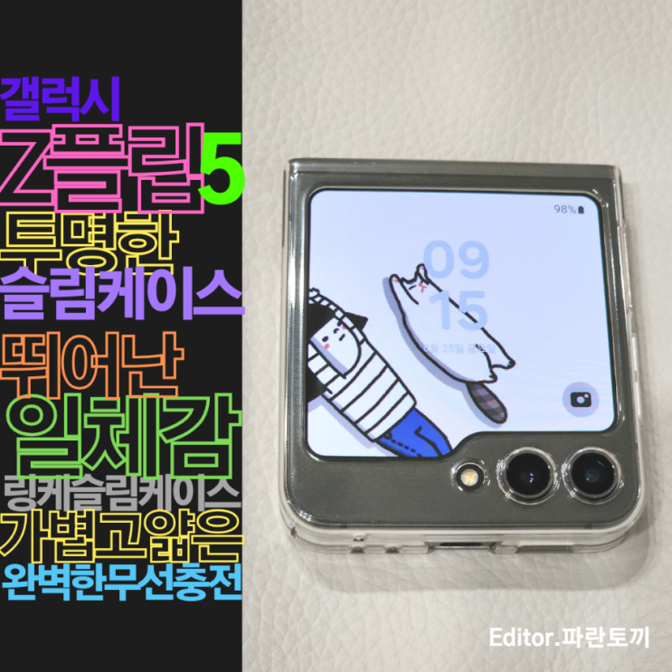갤럭시Z플립5(SM-F731N) 링케슬림케이스 :: 얇고 투명한 피팅감, 일체감 좋은 슬림투명클리어케이스 추천, 완벽한 무선충전, 편리한 스트랩 홀까지..
