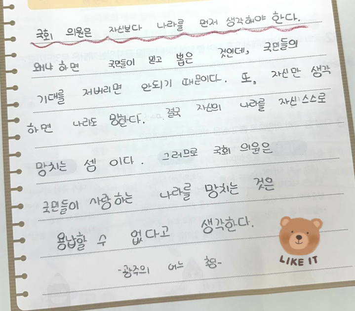 행복했던 2학년 논술수업시간