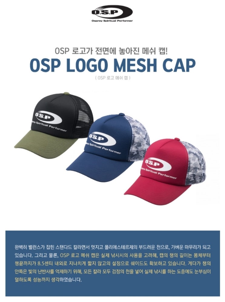 O.S.P LOGO MESH CAP - 낚시인의 필수 모자! 멋과 안전을 함께!