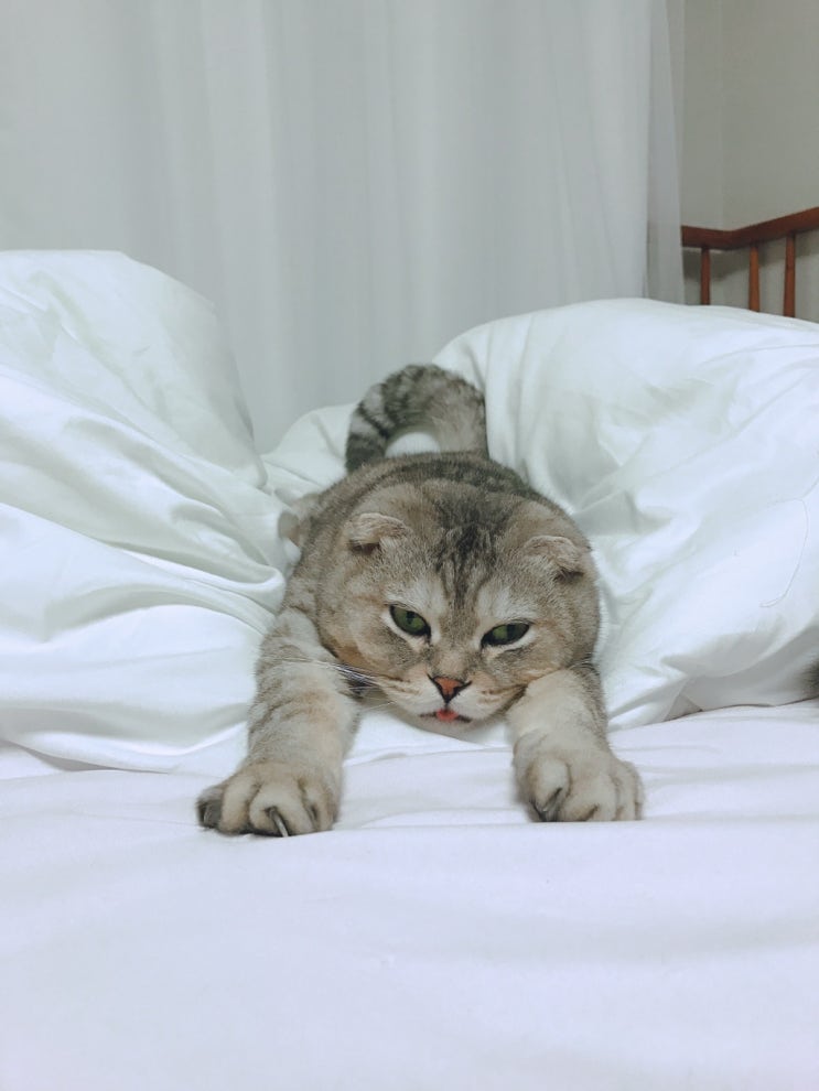 저희집 영길인 정말 사람을 좋아하는데요 제가 일하느라 못놀아주면 항상 침대에 가서 자고 있어요 어김없...