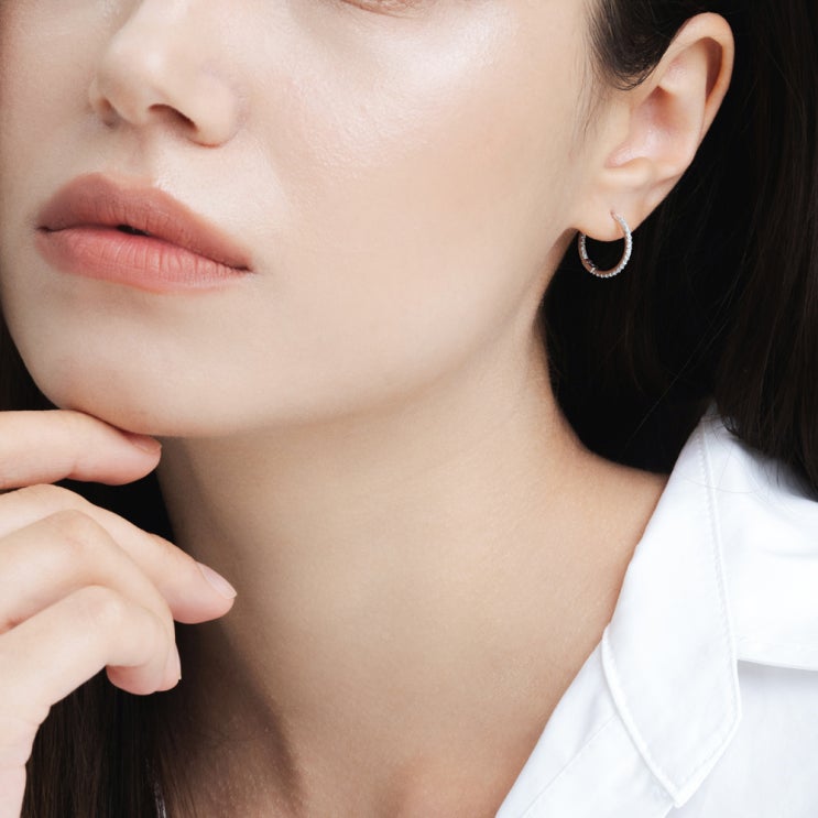어느 각도에서도 화려하게 빛나는 <더블 랩다이아 링귀걸이 1mm>