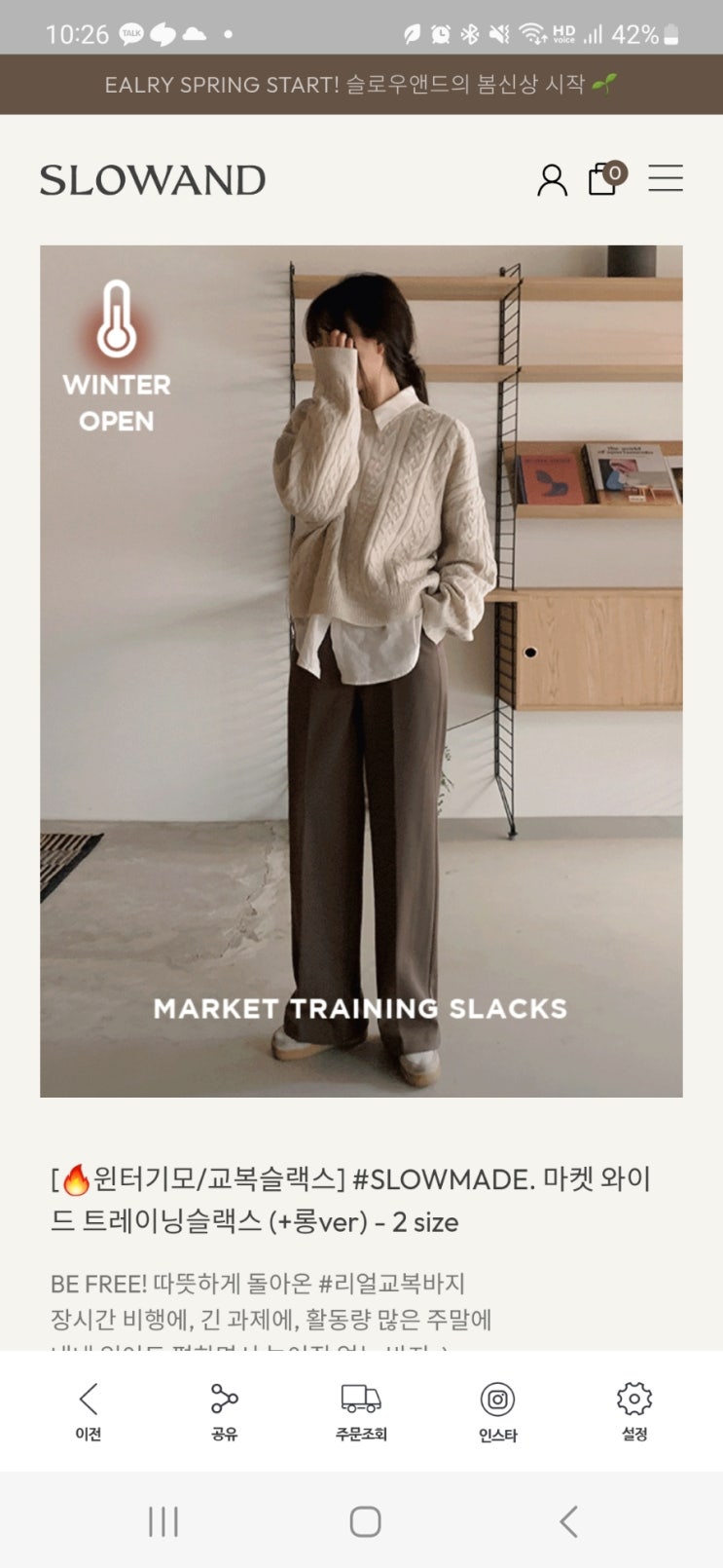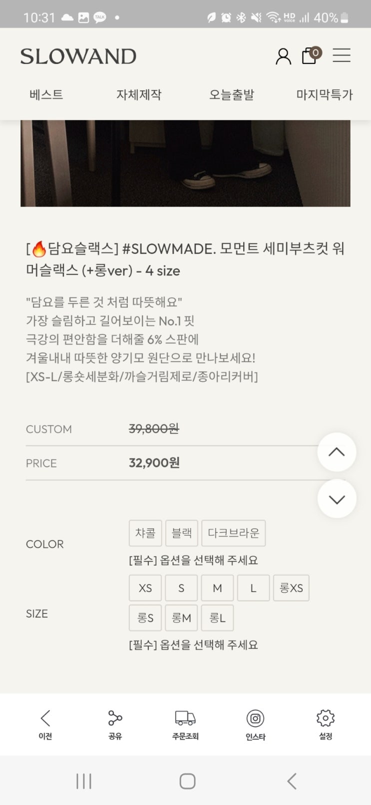 구매_바지_슬로우앤드 세미부츠컷 워머슬랙스