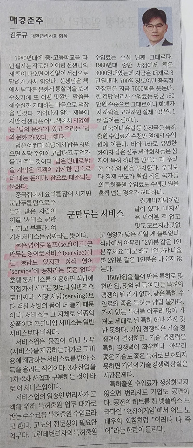 [오늘의 문장] 서양에서는 팁, 우리는 덤