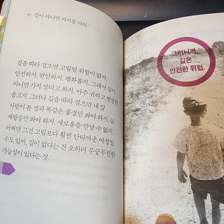 길을 따라 걸으면 고립될 위험이 없지. 안전하지. 편안하지. 평화롭지. 그래서 길이 아니면 가지 말라고 하...