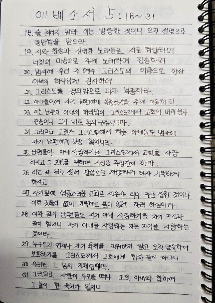 아침30분 성경필사 (에베소서5장 18절~6장11절)