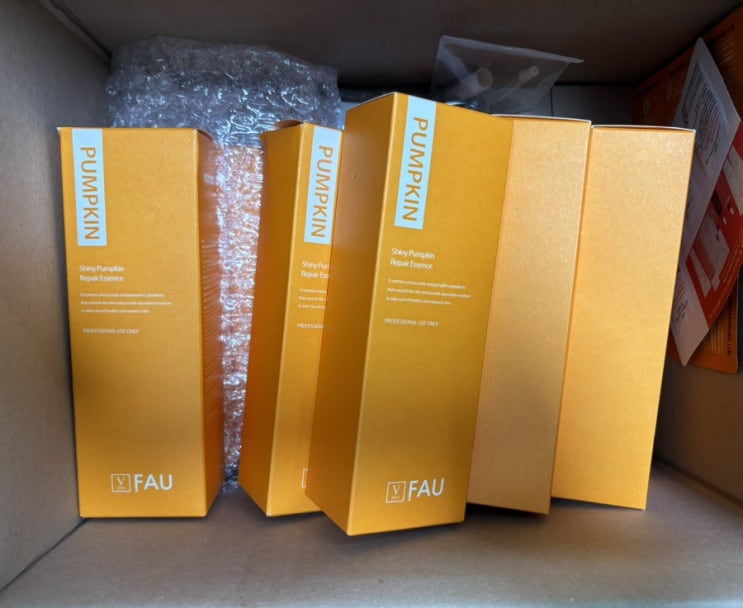 - 파우 펌킨 에센스 샵에 입고되었습니다. 한분이 네개나 구매해주셔서 많이 받아놨어요^^ 펌킨 성분이 함...