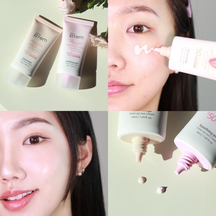 메이크프렘 톤업선크림 수딩핑크 & 글로우베이지! 무기자차 선크림 추천