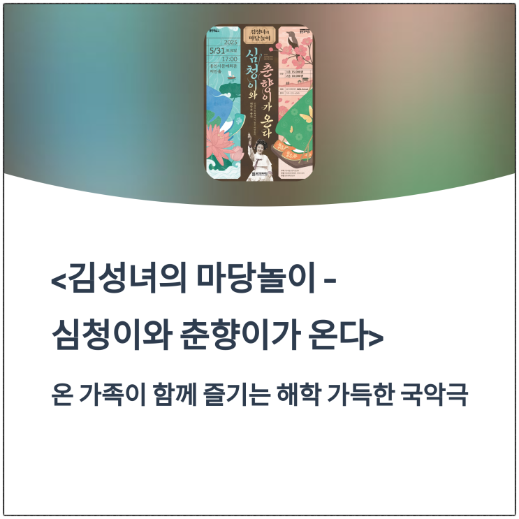 전통의 흥과 감동이 함께하는 마당놀이, 심청이와 춘향이의 귀환 온 가족이 함께 즐기는 해학 가득한 국악...