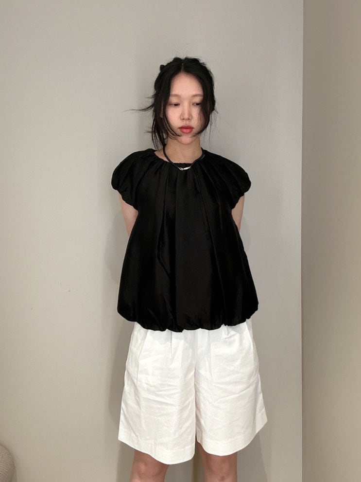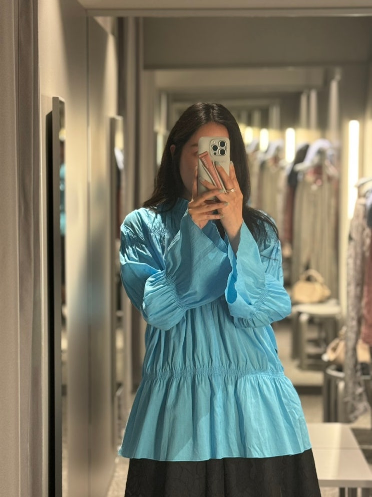 코스 cos 세일 1탄 - 매장 방문 (신상 플리티드 A-라인 미디 셔츠 드레스, 컨트래스트 패널 맥시 드레스, 볼류미너스 패러슈트 블라우스 착샷)