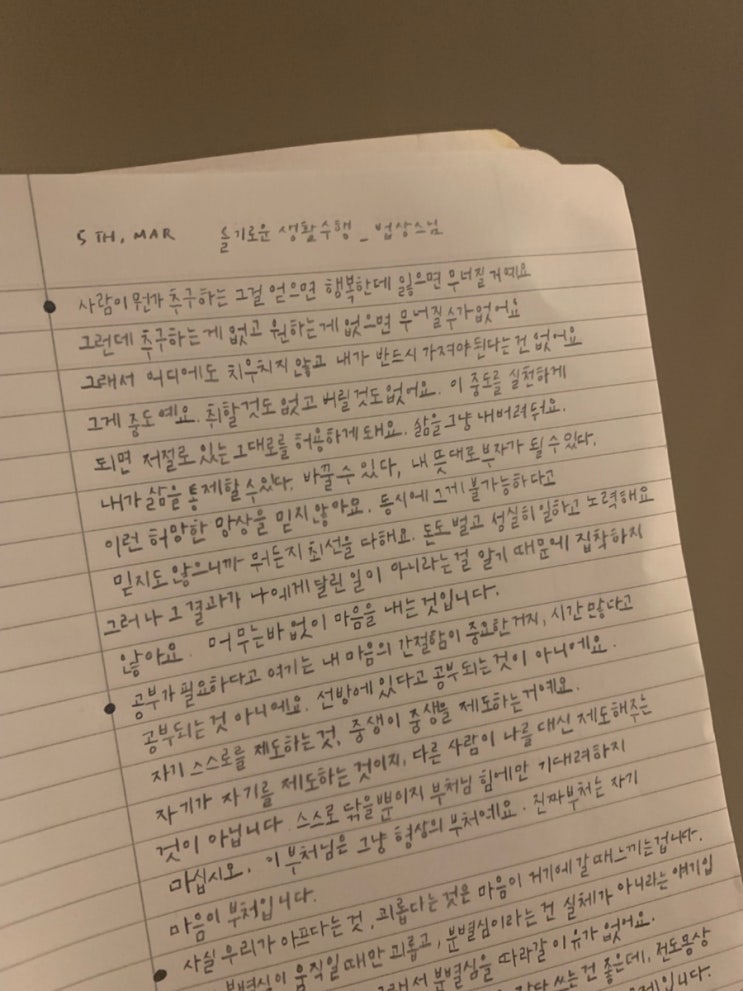 오랜만의 아침 필사. 형제의 기상시간이 얼추 비슷해졌다. 깨기 전에 호다닥 어제 쓰레기통 내다놓으러 나...