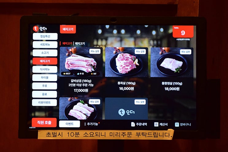 테이블오더 티오더 태블릿메뉴판 티오더 편리한 시스템