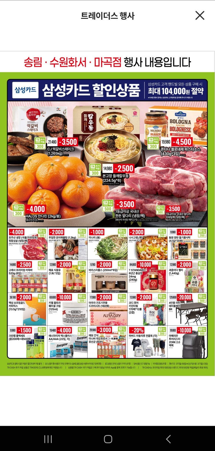 이제 트레이더스 마곡점 특별 할인은 끝났는지 할인 전단이 같아요. 트레이더스 송림점, 트레이더스 수원화...