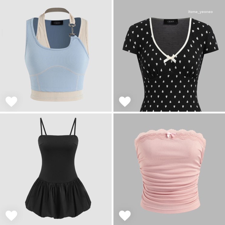 안녕하세요, 멀앵입니다-! 오늘은 이전 위시리스트에서 예고했던 샵사이다 여름 코디 후기 모음을 가져왔어...