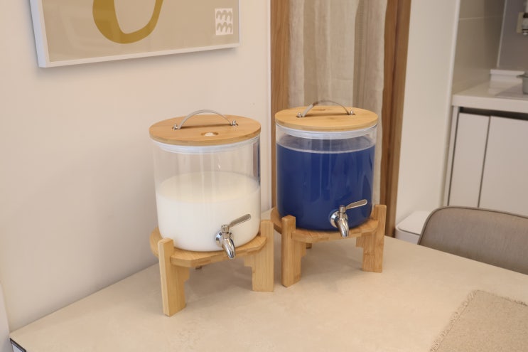 안녕하세요 영이입니다! 케이터링 행사에서 볼법한 이 나무 용기는 물 디스펜서인데요 저는 이 5L 짜리 대...