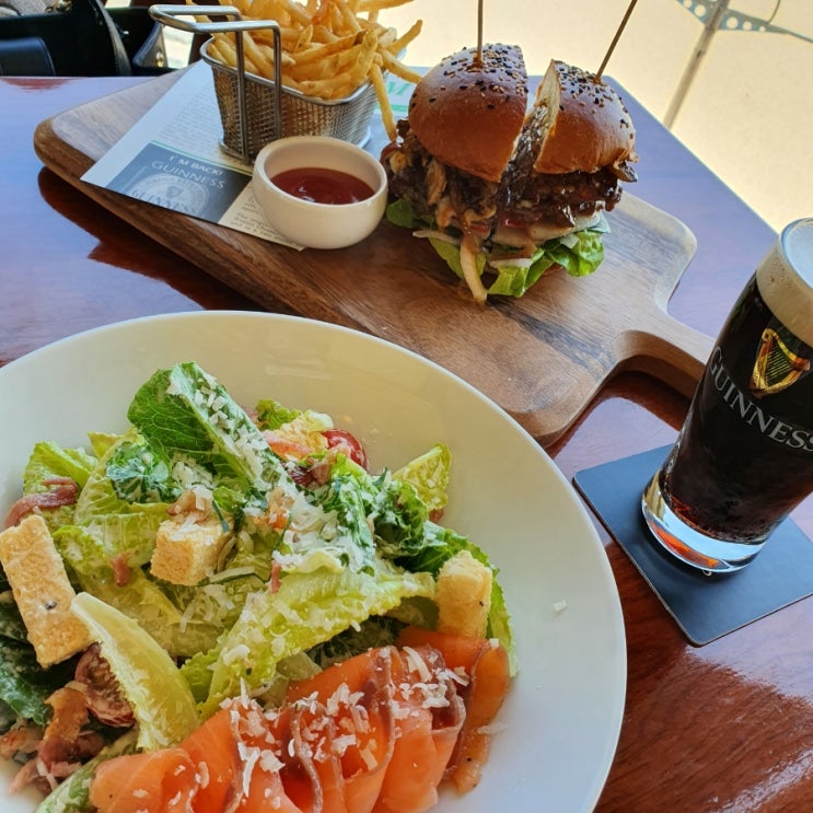 해운대 수제버거 맛집 웨스틴 조선 부산 오킴스에서 트러플 한우 버거와 훈제연어 시저 샐러드 먹방
