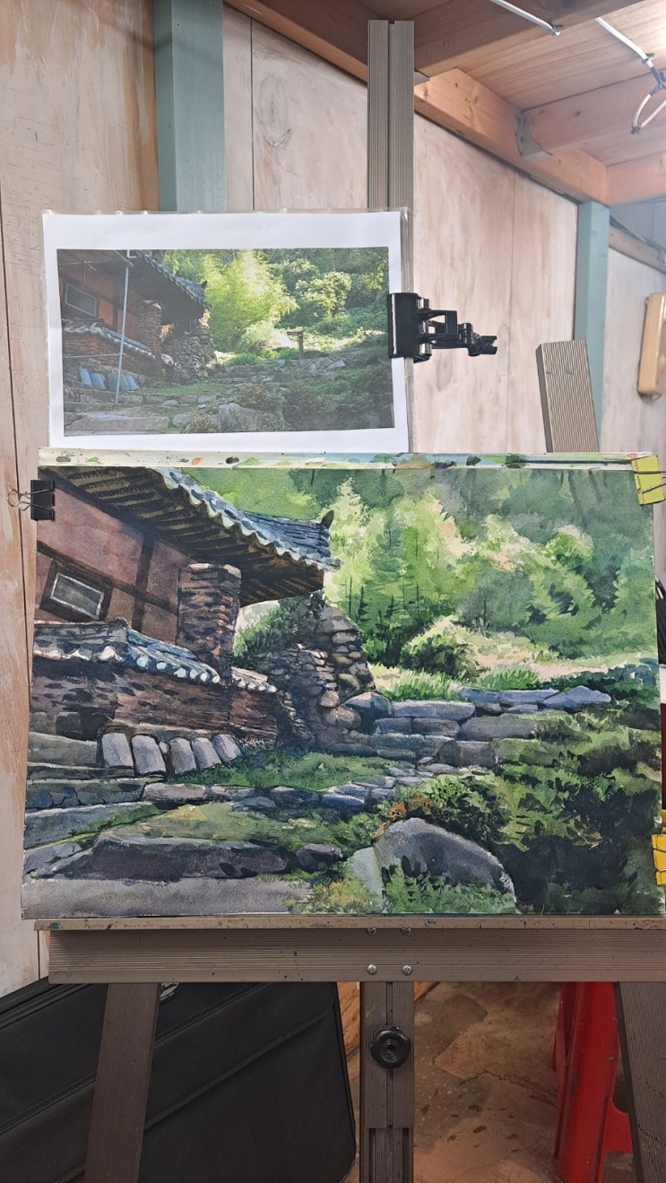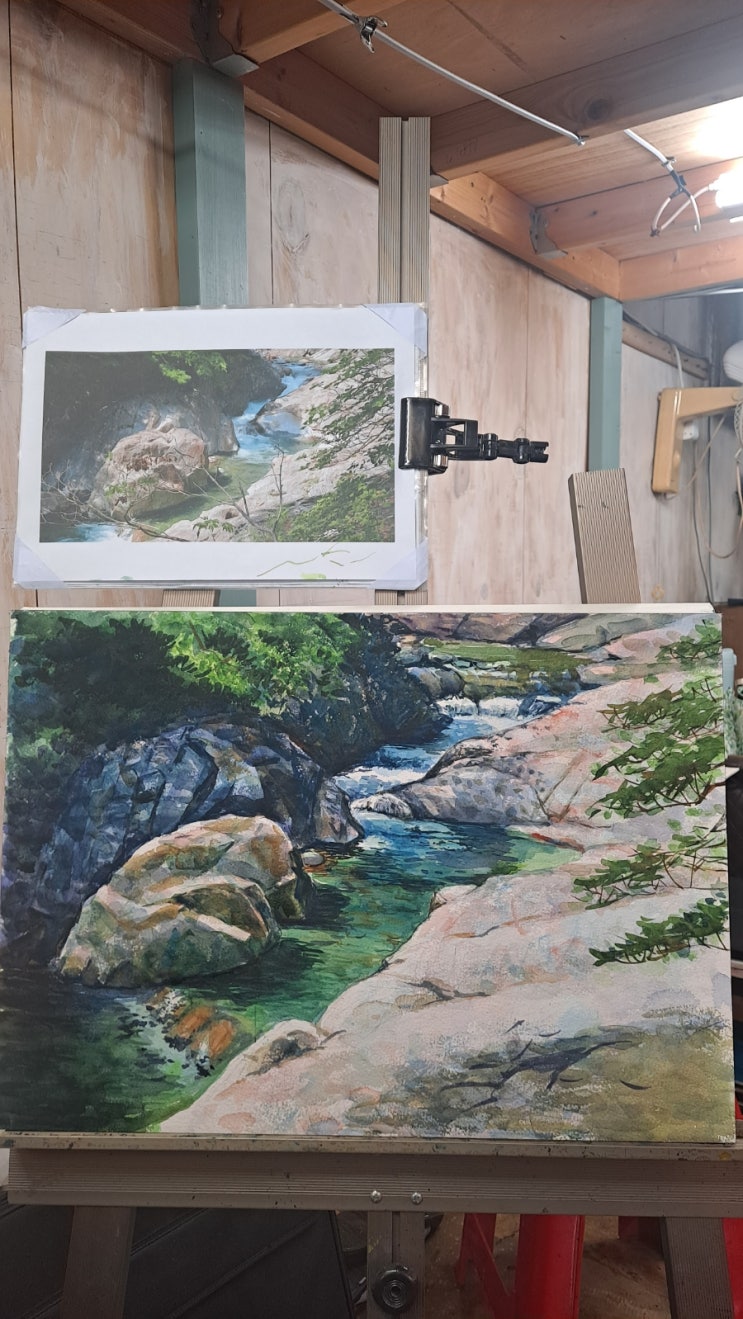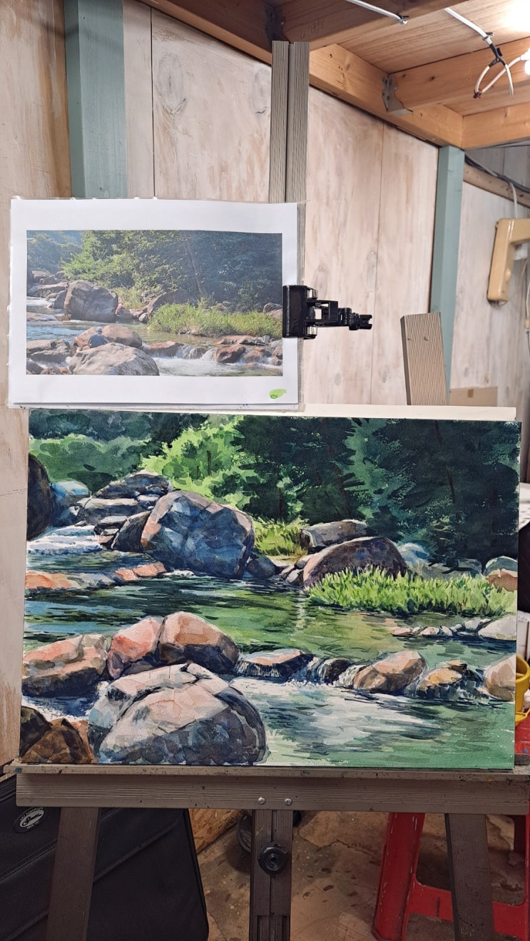 작년 여름에 갔던 지리산 대원사 계곡 어느 골짜기를 수채화로 그려봤습니다. 뜨거운 여름일수록 깊고 푸른...