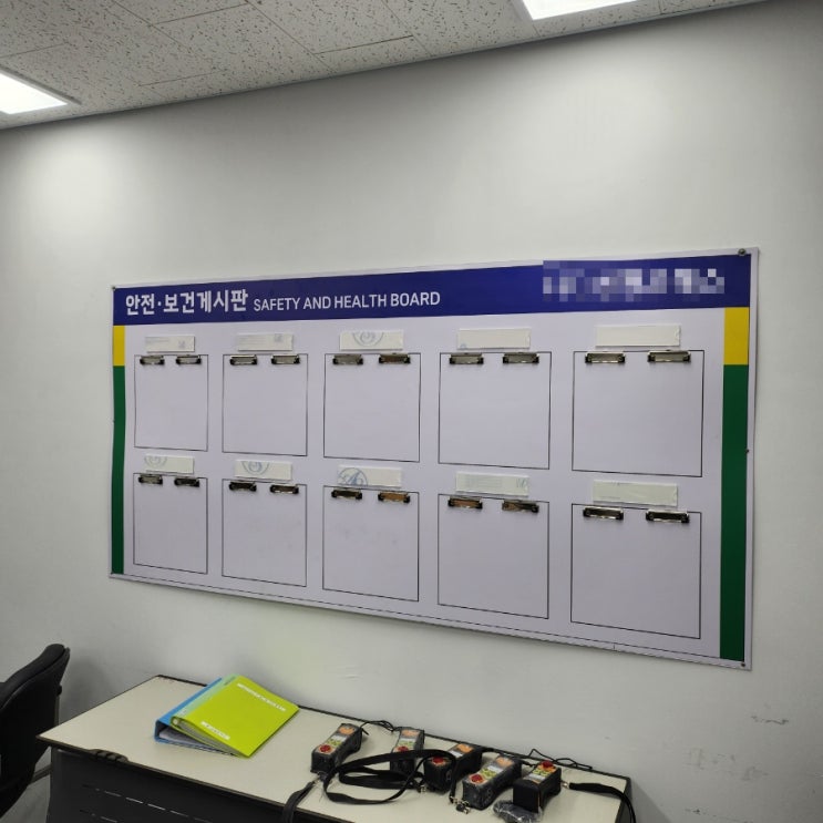 안전보건게시판 주문 받아서 설치하고 왔습니다. 원하시는 문구로 포멕스판에 실사출력후 파일 정리판도 설...