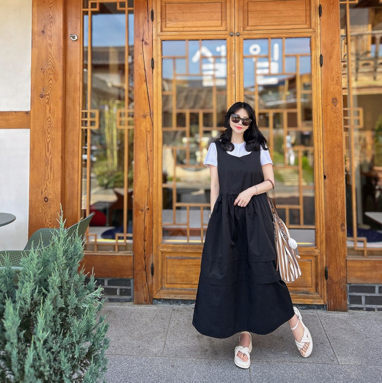 메타퍼 이지 뷔스티에 원피스 코디, 블랙 여름 롱원피스