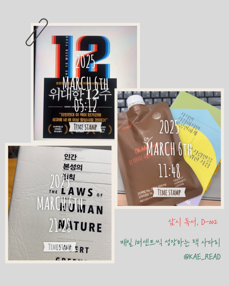 안녕하세요. 매일 1퍼센트씩 성장하는 책 사다리입니다. 어제부터 새롭게 삼시 독서라는 걸 시작했다. 병렬...