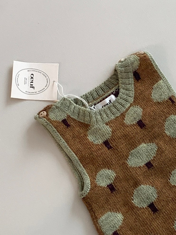 9개월 아기 옷 코디 우프 oeuf 알파카 소재 트리 모티프 롬퍼와 밤비햇 코디