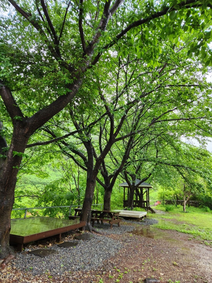 비와서 더 좋았던 여행 사방이 산으로 둘러싸여 있어 운치있고 너무 멋있었다 #파래소펜션 #파래소빨간지붕...