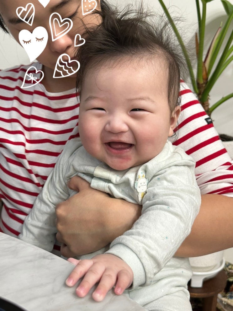 [육아일기] D+165~171 엄마얼굴을만져요(코를뜯어요),첫이유식,짹짹이꼬니,침독(Feat.탕후루꼬니),마마지콩의운동시작