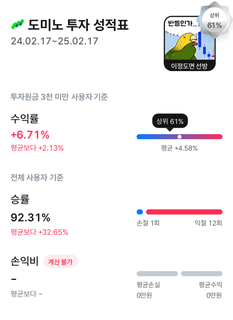 [25. 2. 17. 투자일기]금현물1g매수/도미노 투자성적표