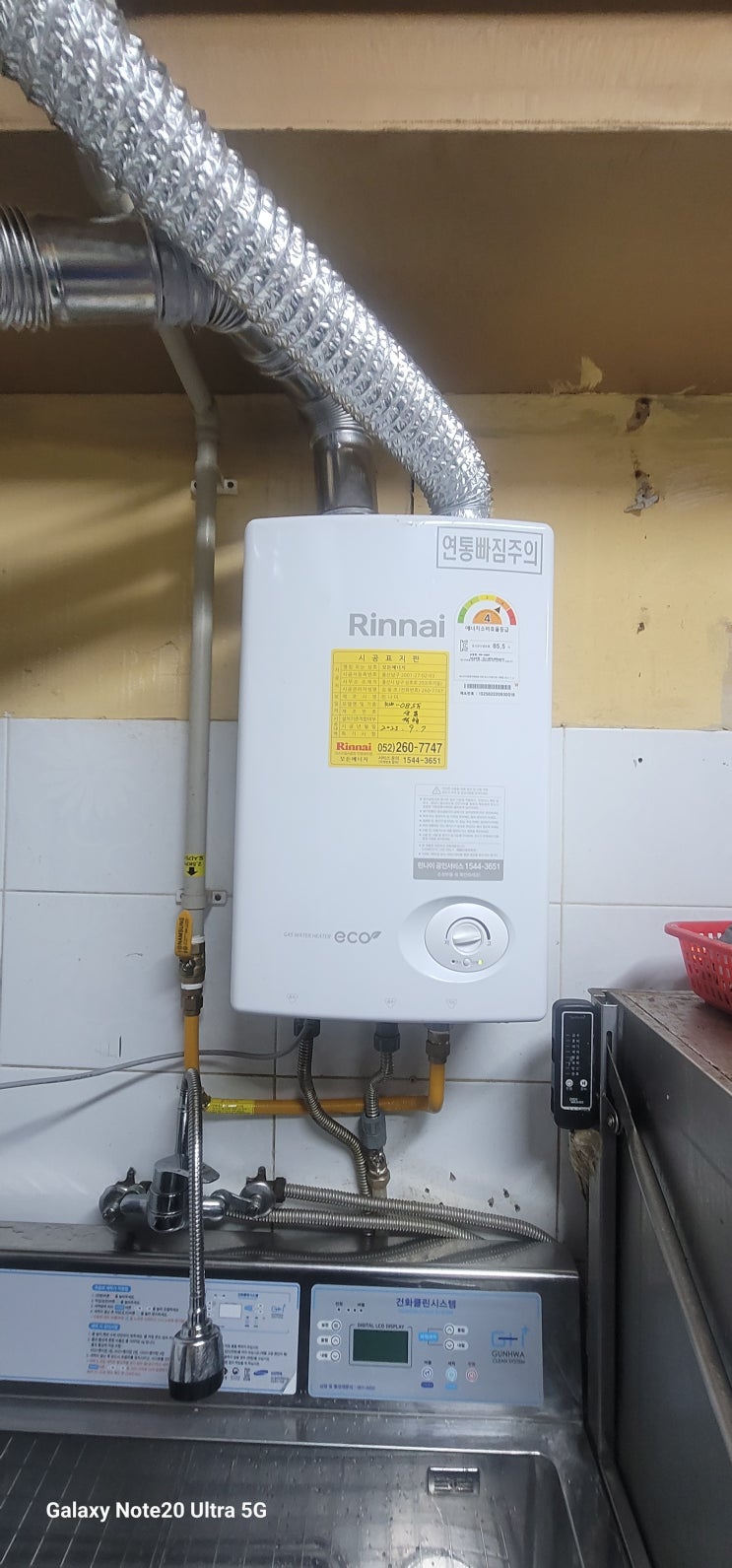 헤어르뽀렘경주용황점 린나이가스온수기 전기 온수병렬시스템