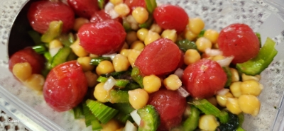 Chick pea 병아리 콩 삶아, 끓는 물에 넣어 껍질 벗긴 방울토마토 양파, 샐러리, 올리브 유, 발사믹, 후추...