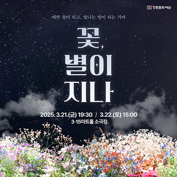 연극 《꽃, 별이 지나》 공연일정 | 2025년 3월 21일(금) 19:30 ~ 3월 22일(토) 15:00 공연장소 | 3·15아트...