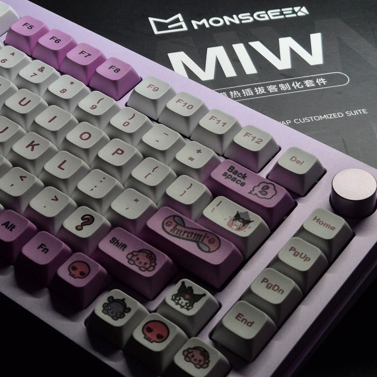 " 몬스긱 m1w " 근데 이제 오테뮤 라임 스위치와 쿠로미 키캡을 곁들인. 예전에 가성비로 유명했...