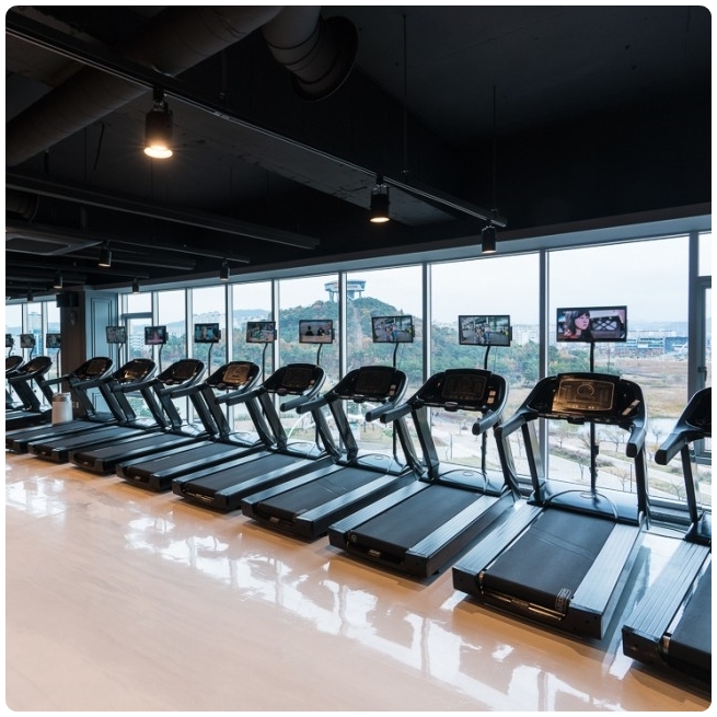 경찰서 내 체력 단련장 클럽용 런닝머신 벨트, 데크 교체 작업