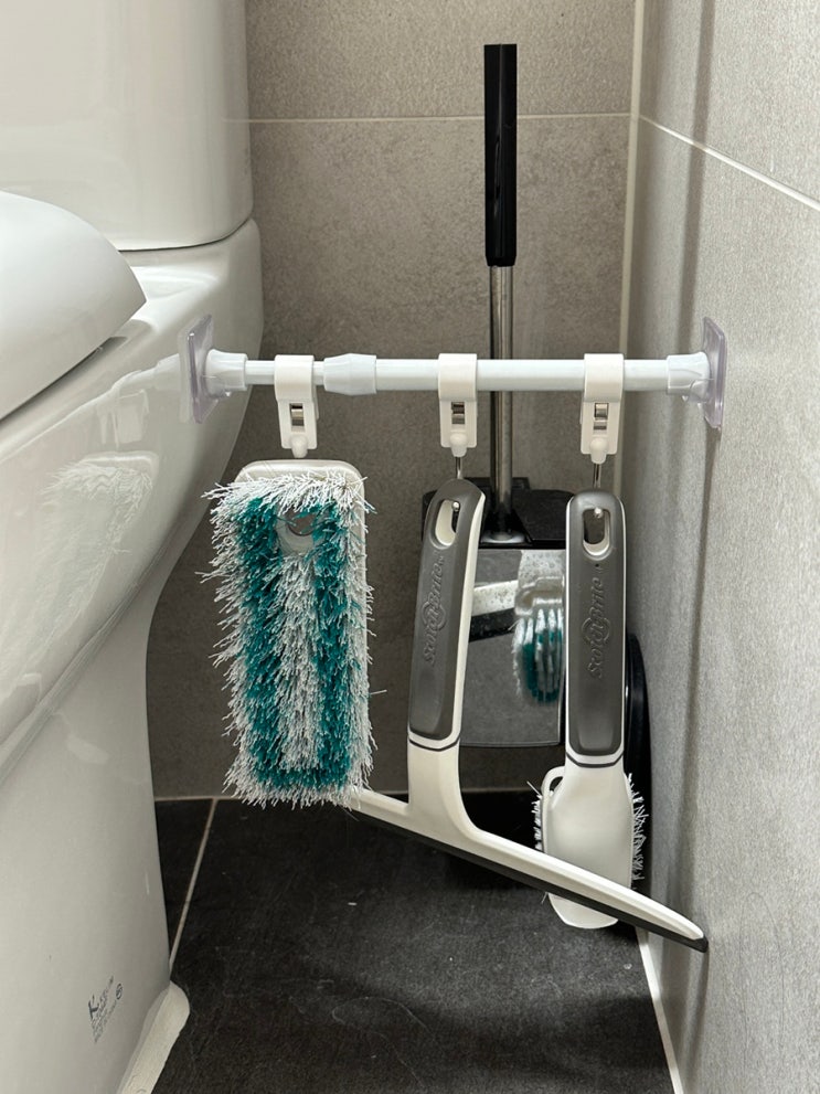 욕실정리 미니 압축봉으로 청소도구 정리 내돈내산