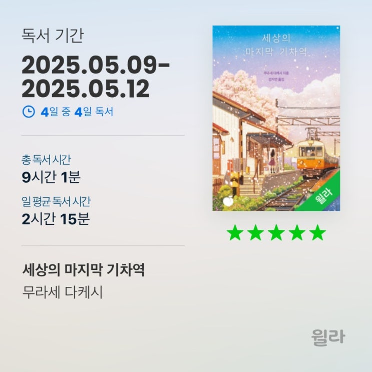 책 듣는 즐거움 윌라 오디오북 세상의 마지막 기차역 완독