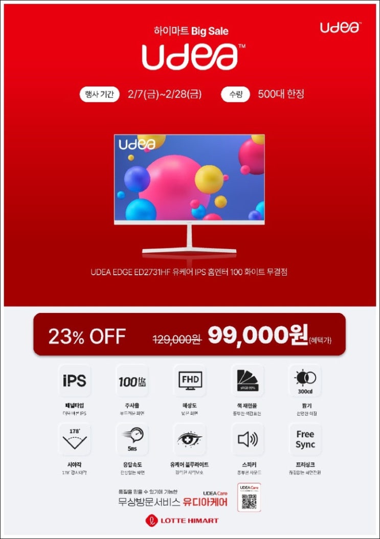 포항하이마트) 유디아 27인치 99,000원 특가행사 가성비 모니터 추천