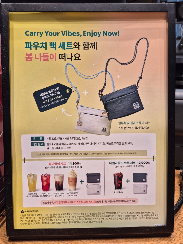 2025년 4월 22일 화요일 스타벅스가 봄나들이 이벤트로 스벅 파우치 백 세트 한정 수량을 출시했습니다. 며...