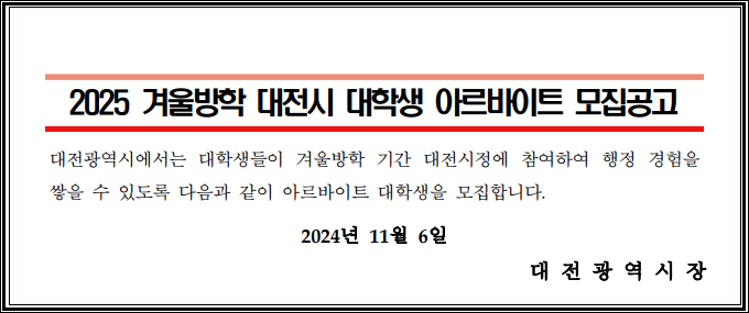 겨울방학 대전 대학생 아르바이트 관공서 시청 알바 모집