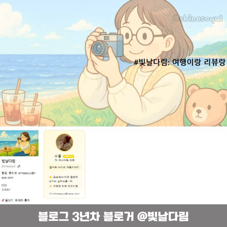 안녕하세요! 국내 이곳저곳을 누비며 여행 기록을 담고 있는 3년차 블로거 빛날다림입니다. 3년째 전국 이...