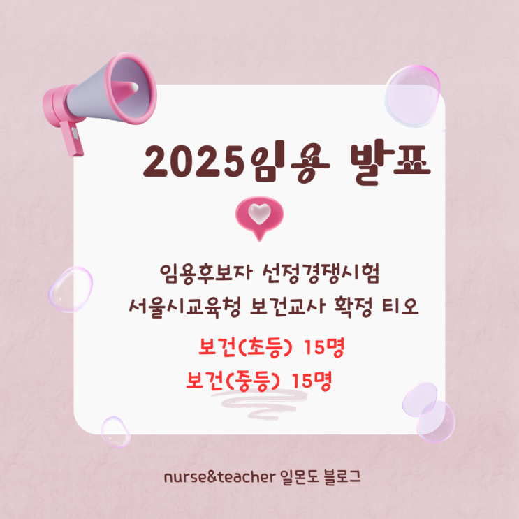 안녕하세요! 일몬도입니다. 보건교사 경쟁률 및 2025학년도 중등교사 임용후보자 선정경쟁시험 서울특별시 ...