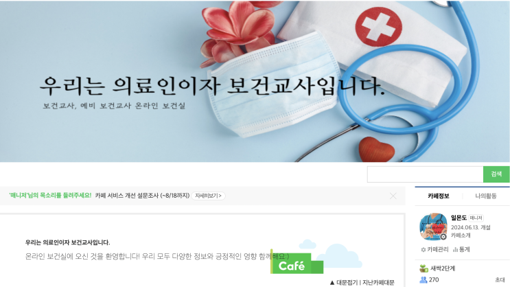 보건교사 하는 일 공유하는 보건교사 커뮤니티 네이버 카페 우리는 의료인이자 보건교사입니다
