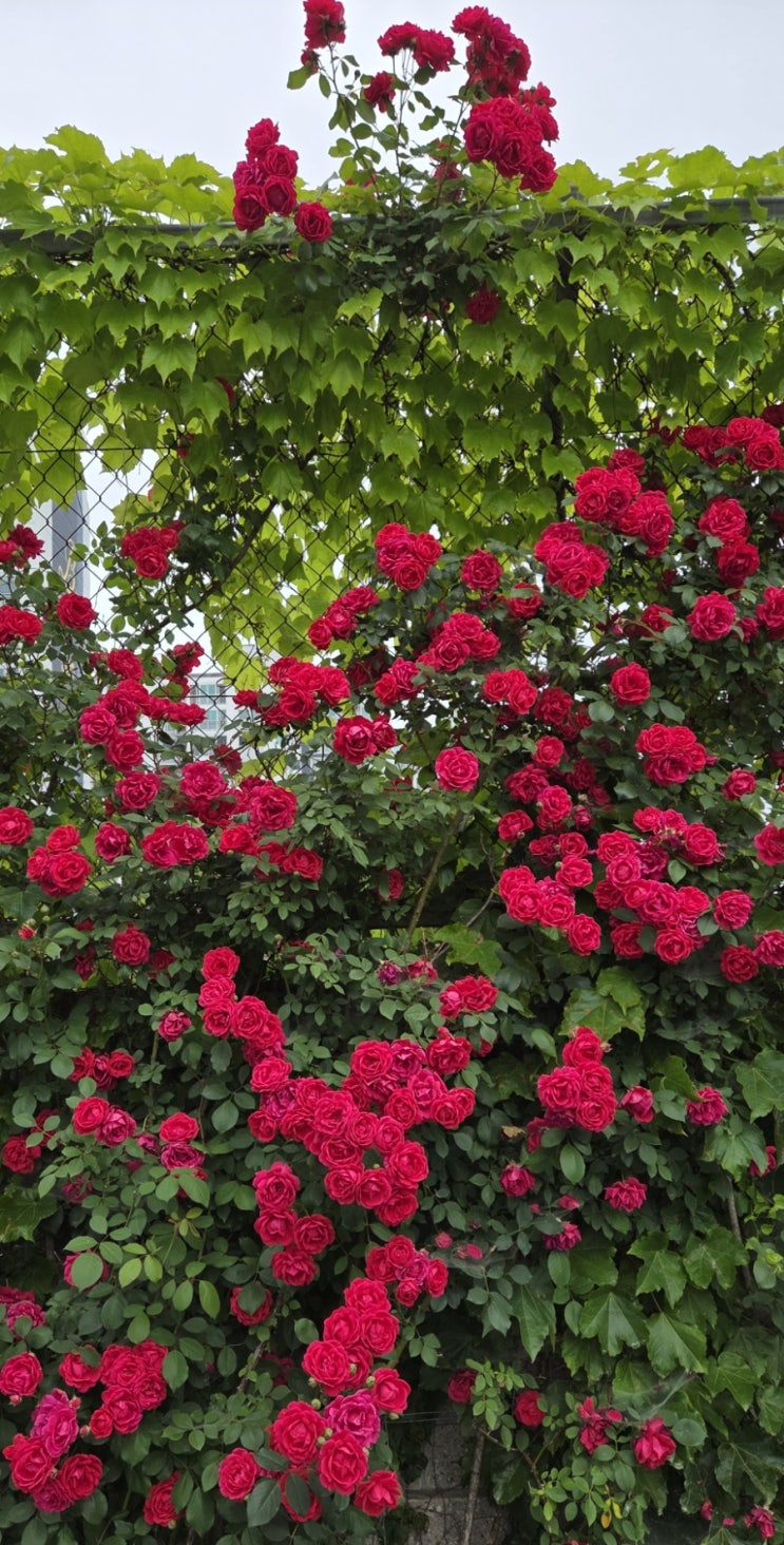 집 앞 장미꽃 장미꽃과 담쟁이넝쿨이 서로 이쁘다고 뽐내고~ 담쟁이넝쿨이 자리잡은 울타리를 따라 빨갛게 ...