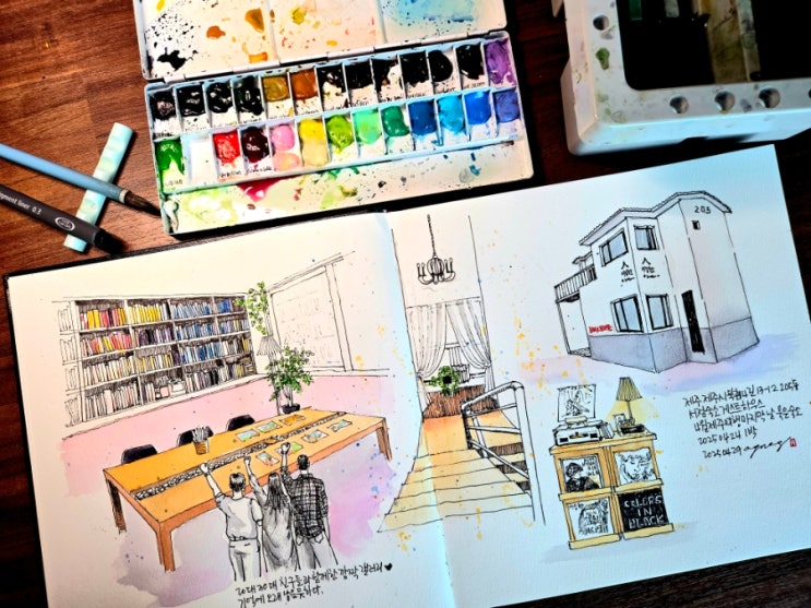 [여행드로잉] 제주 더 애월, 서점숙소, 사계항, 소색채본